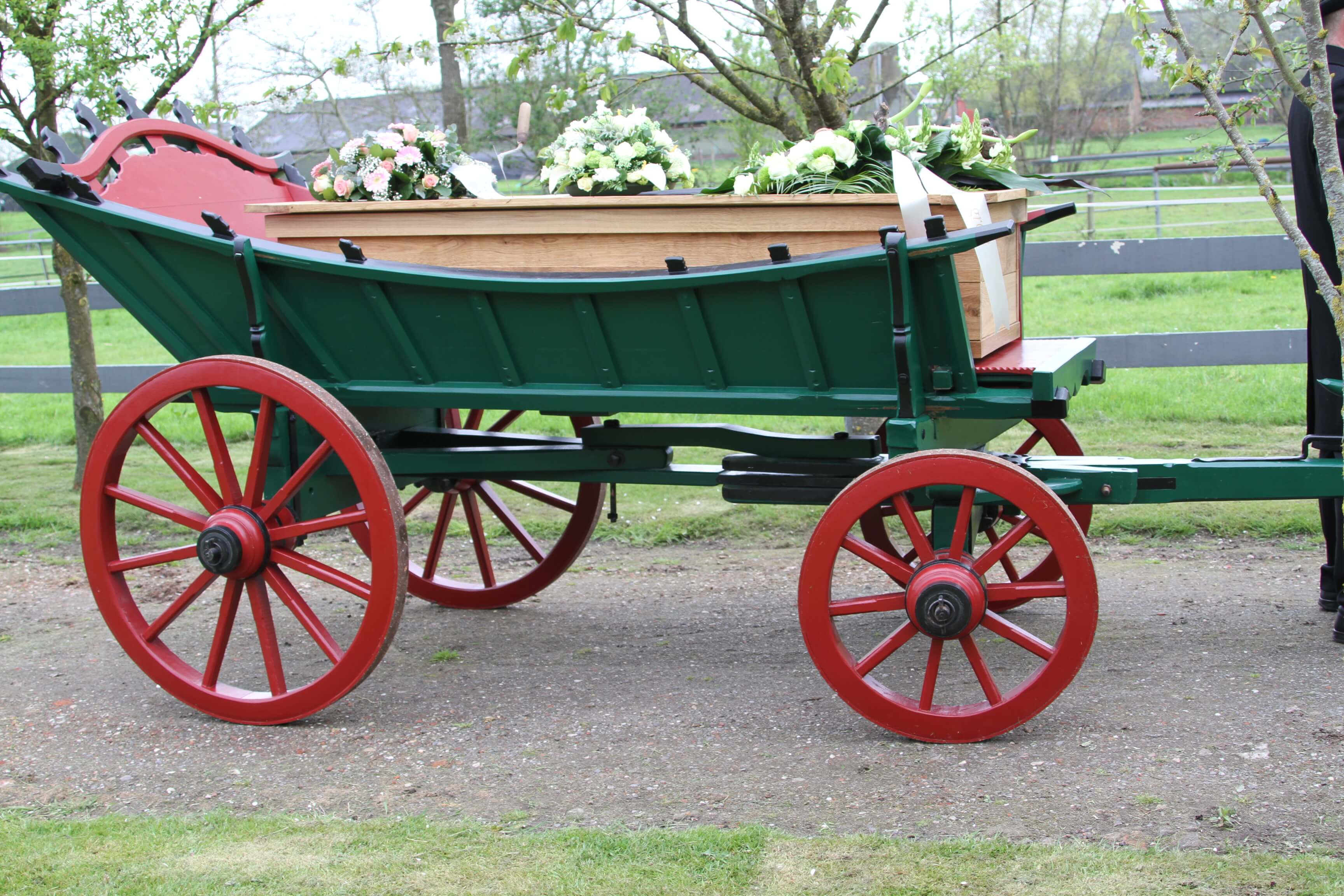 Daarnaast heeft Landheer Stûkhúster de beschikking over twee boerenwagens. De heer Landheer loopt hiernaast met het paard in 'de losse strengen". Rouwvervoer per boerenwagen is een oude traditie waar mooie rituelen bij horen. Zo gaat de koetsier met het paard achter de wagen staan wachten, waarbij het hoofd van het paard als eerbetoon aan de overledene naar de kist gericht wordt.